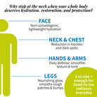 Six ounce size is perfect for full-body use — face-to toe — because why should skin perfection stop at the neck? No silicones, no sulfates, no avobenzone, no oxybenzone, no fragrance—just pure, uncompromising skin wellness.